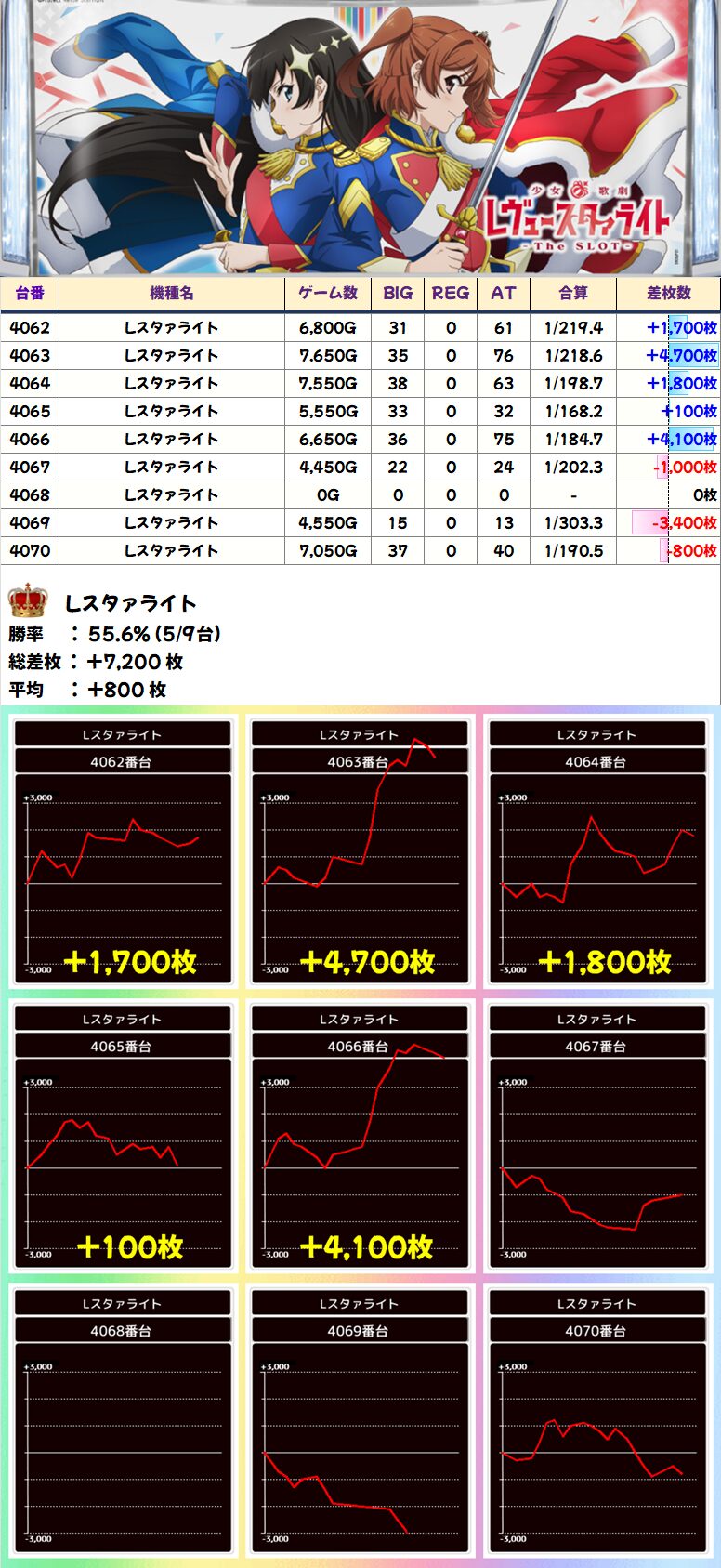 レヴュースタァライト(5/9台+)➡平均+806枚