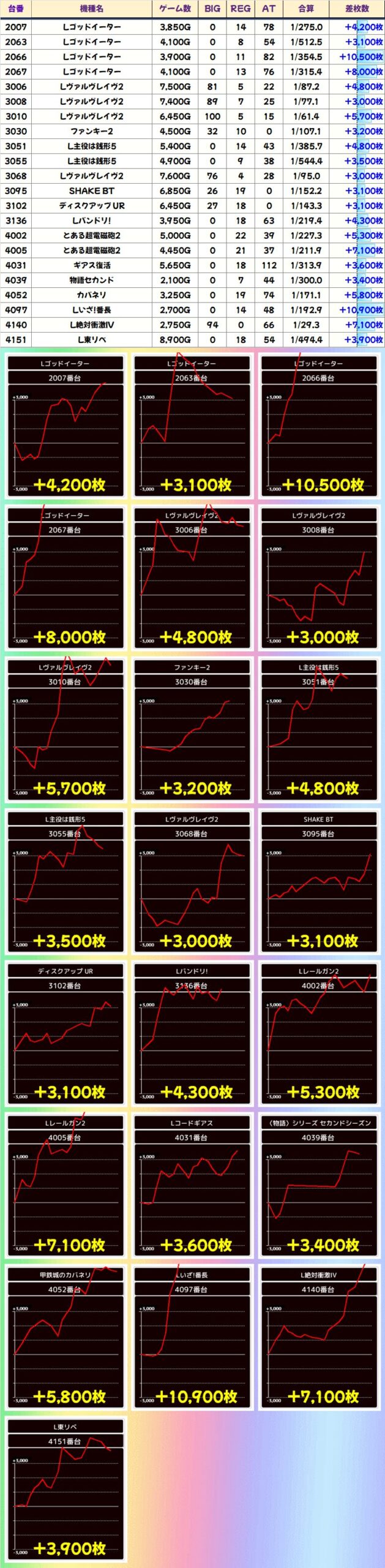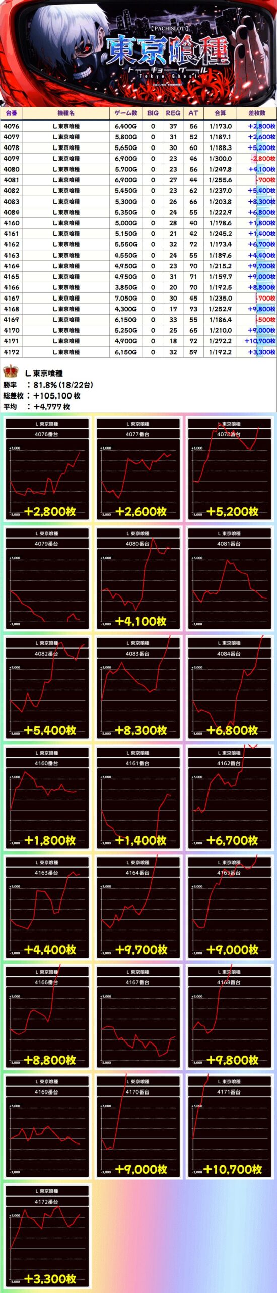 L 東京喰種 (18/22台+) ➡平均 +4,777枚