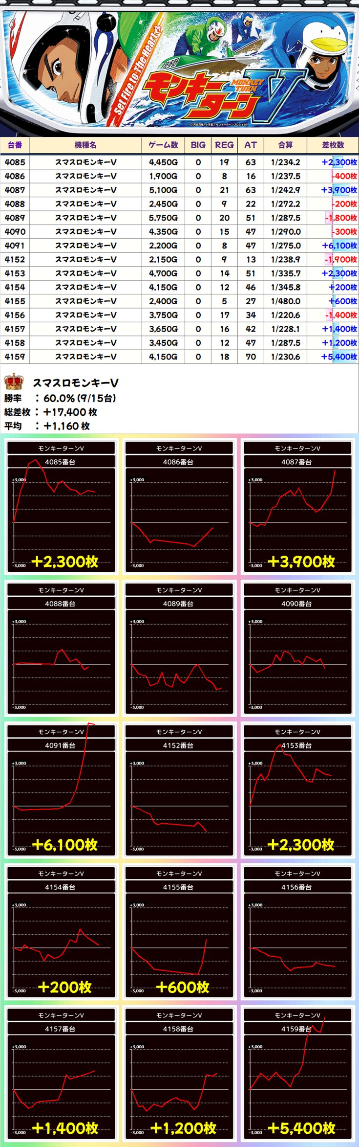 スマスロモンキーV(9/15台+)➡平均+1,183枚