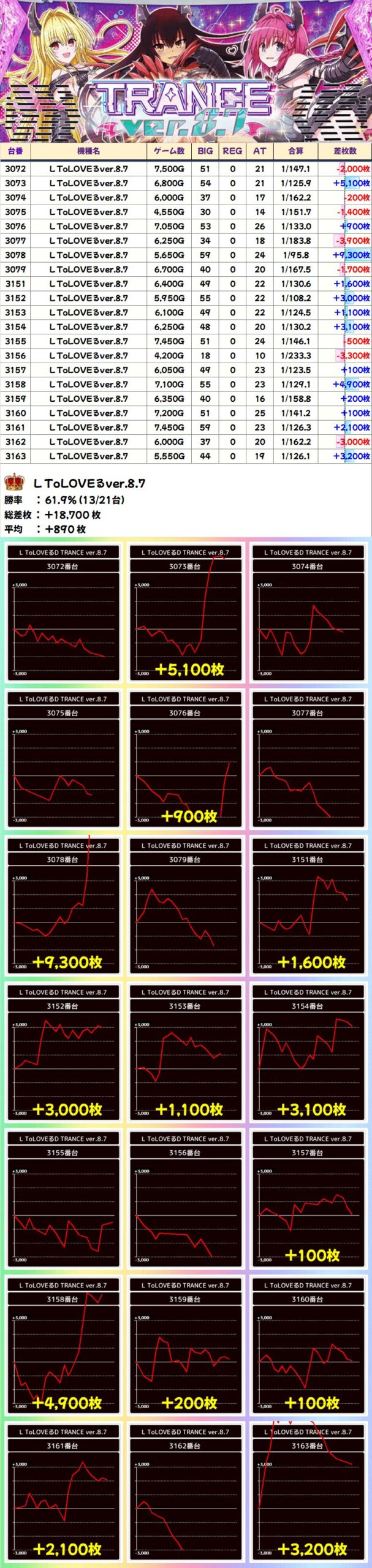 ToLOVEる ver.8.7(13/21台+)➡平均+902枚