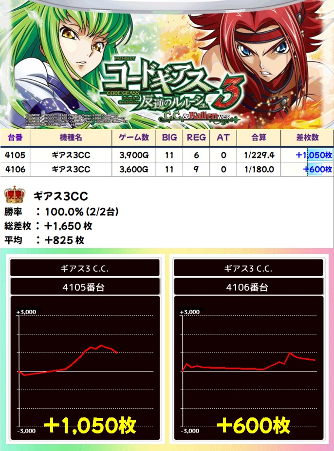 上記扱いの良かった定番エリア以外にも優秀機種あり!ギアス3や戦国恋姫は仕掛けが入りがちなので、強い日は意識しておいて損はないですよ!