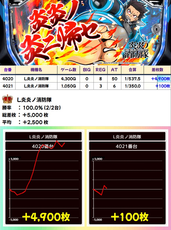炎炎ノ消防隊(2/2台+)➡平均+2500枚