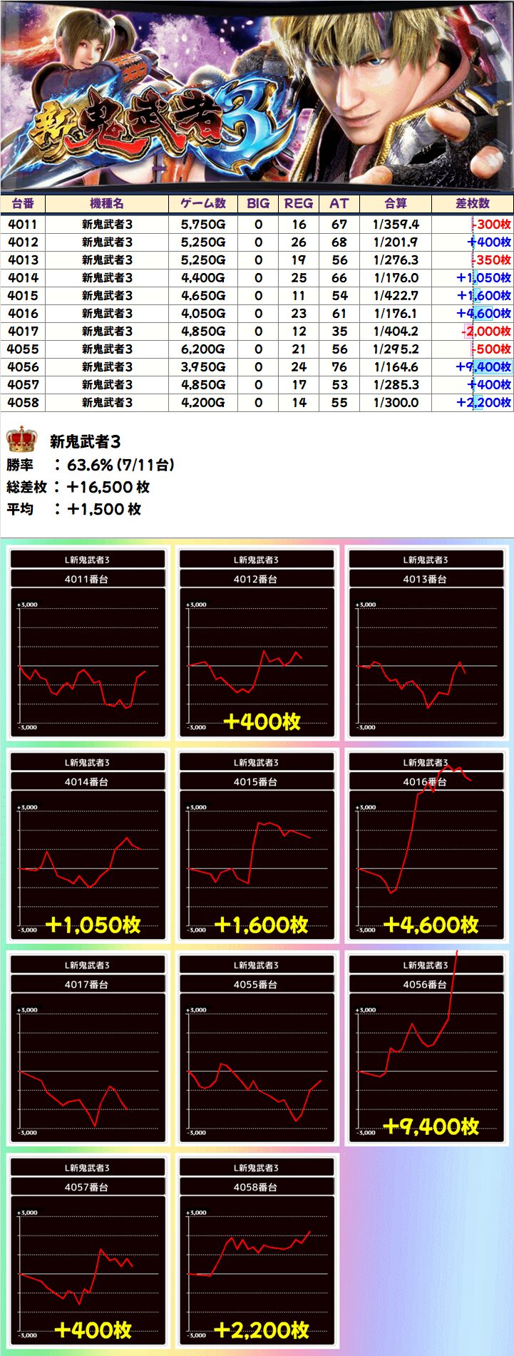 新鬼武者3(7/11台+)➡平均+1,500枚