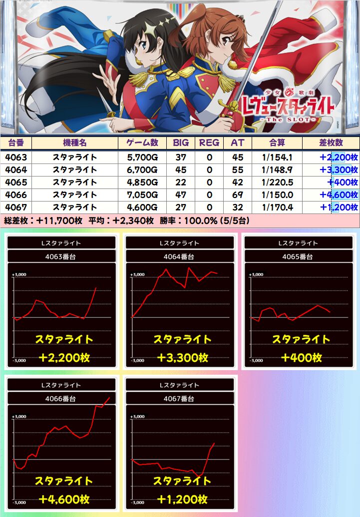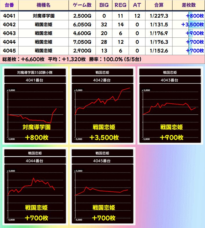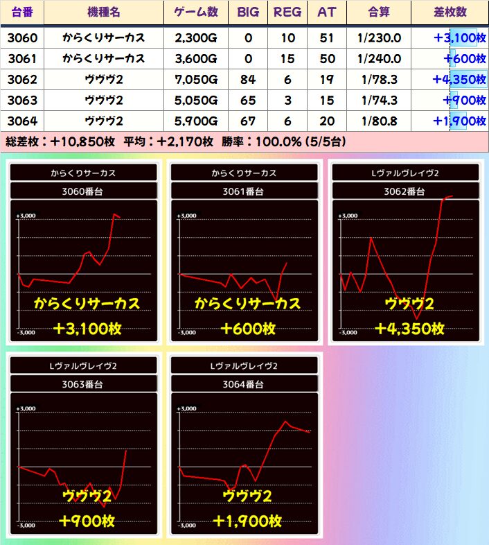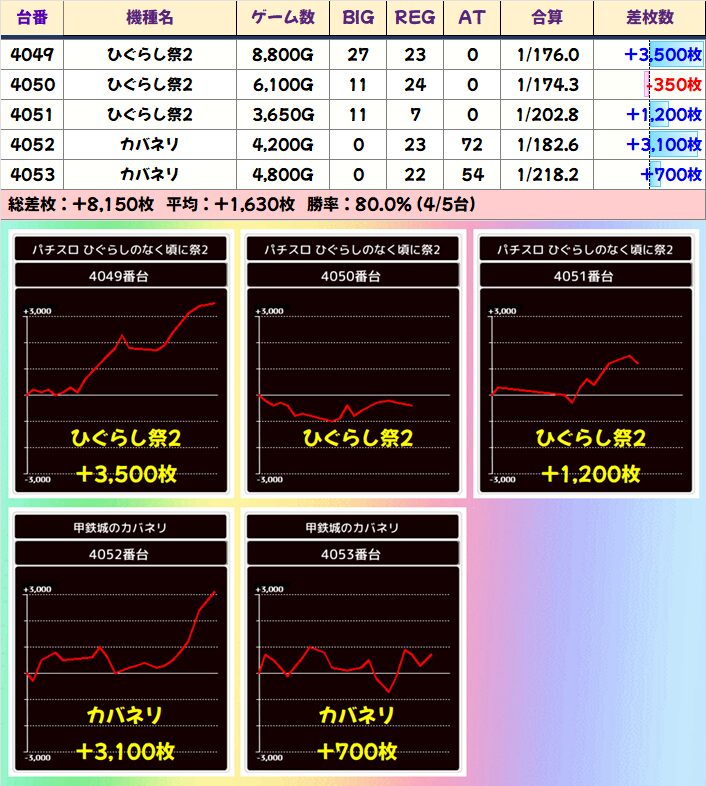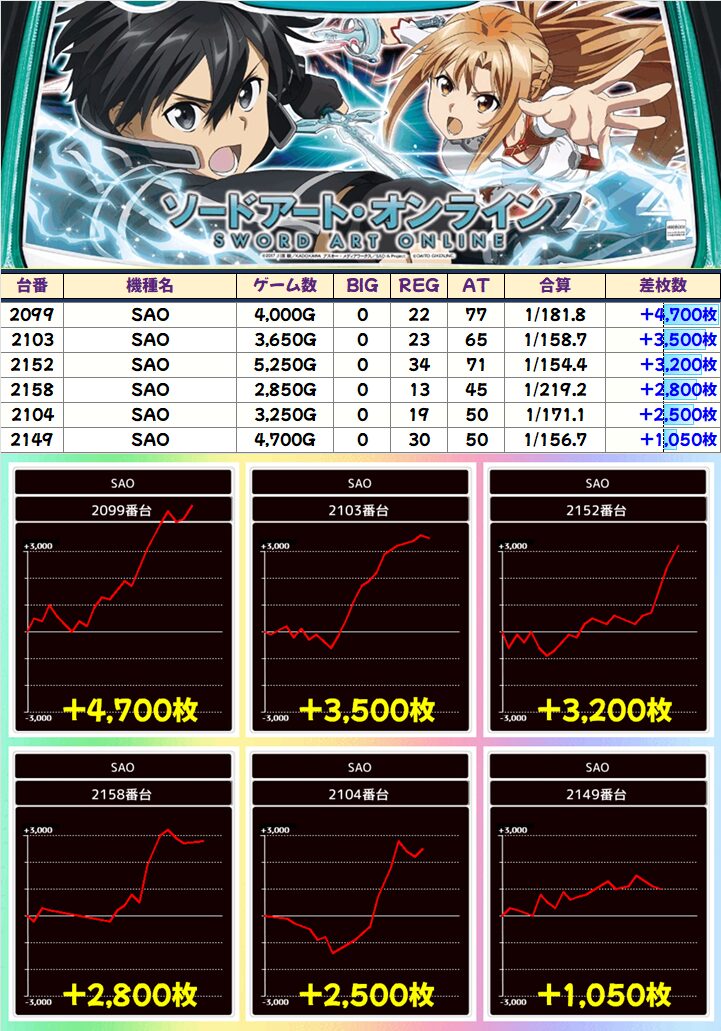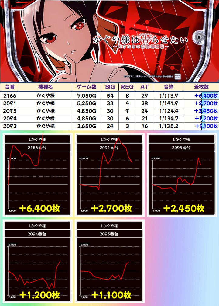万枚を筆頭に5台中4台がプラスに! 稼働も抜群なので何かしらの仕掛けがあったことは打ち手に伝わったか!?