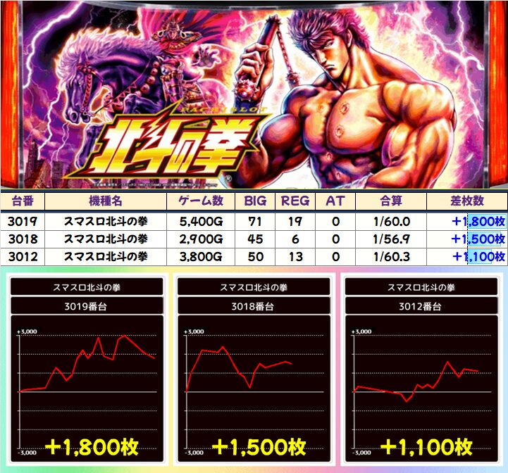 「バンドリ」には万枚!「ガルパン最終章」には+3500枚以上が複数!「北斗の拳」は9台中6台がプラスに!