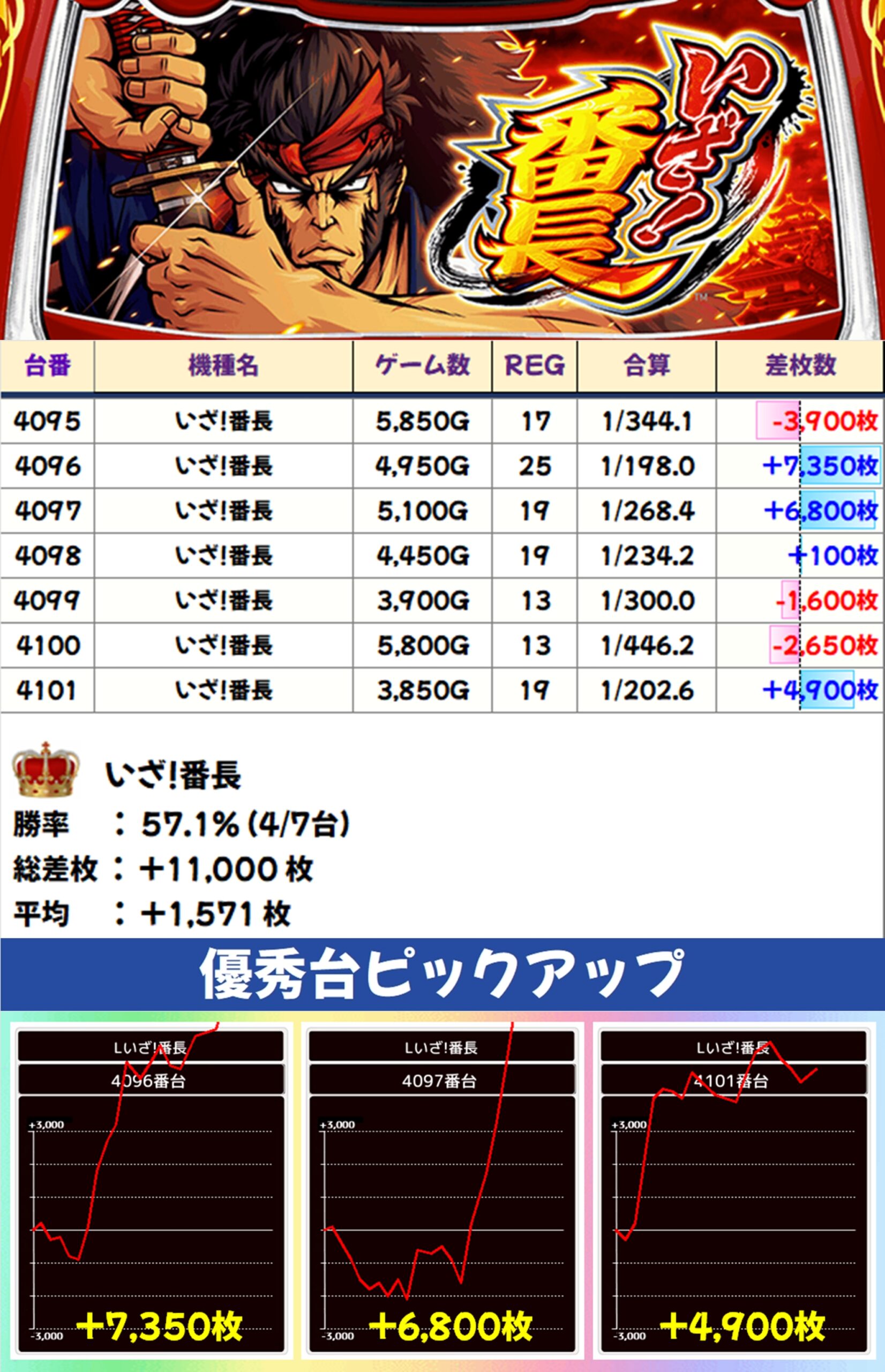 いざ!番長、モンハンライズ、防振りはいずれも半数以上がプラスとなり、大量出玉も確認。これらの3機種は高配分の仕掛けがあったことは間違いないと思われます!