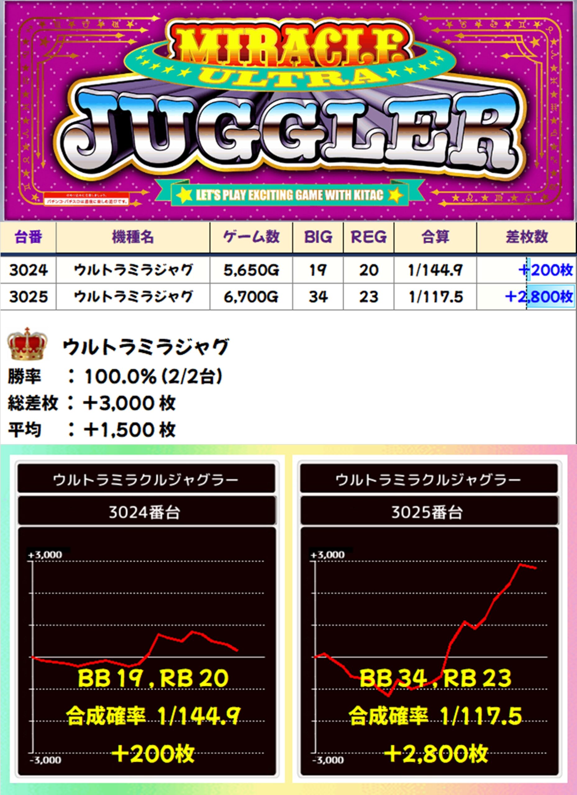 【全台系濃厚】ウルトラミラジャグ(2/2台+)→平均+1,500枚