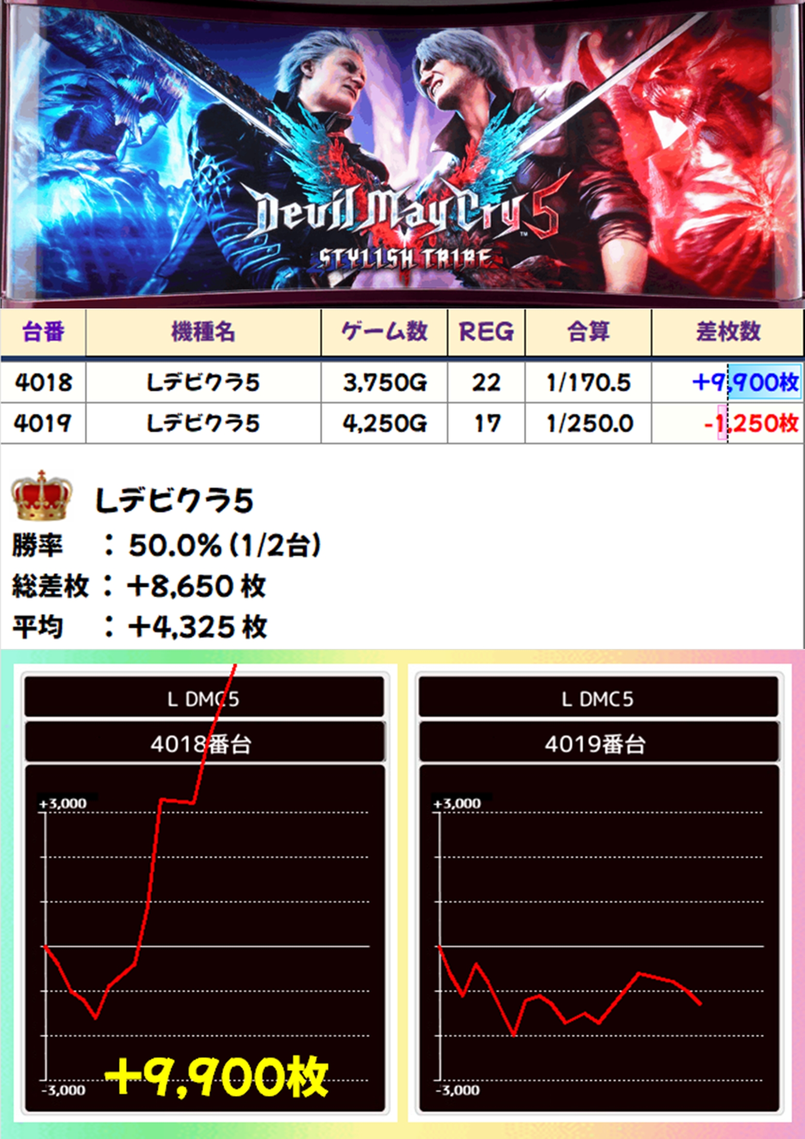 Lデビクラ5(1/2台+)→平均+4,325枚