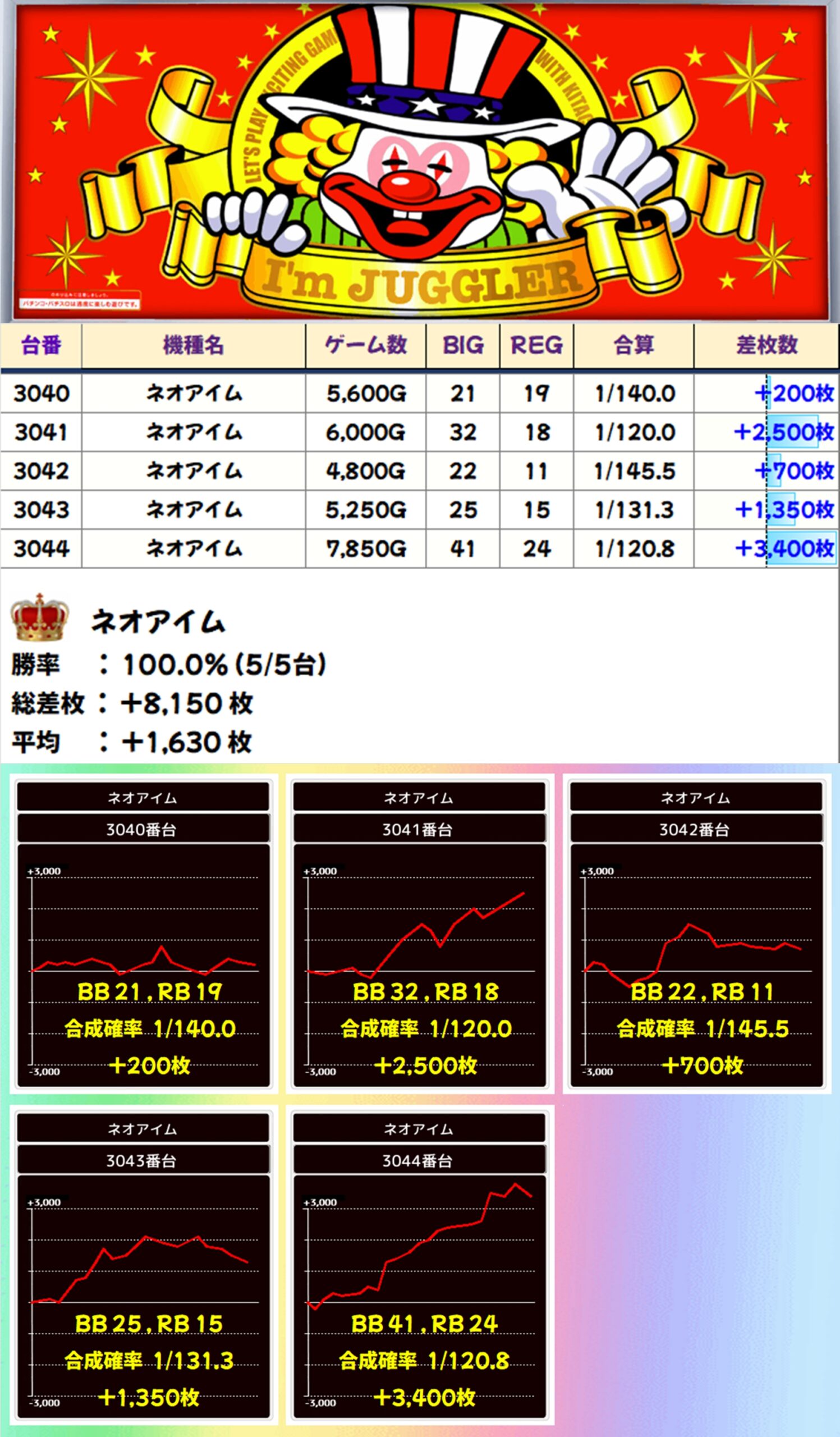 【全台系濃厚】ネオアイム(5/5台+)→平均+1,630枚