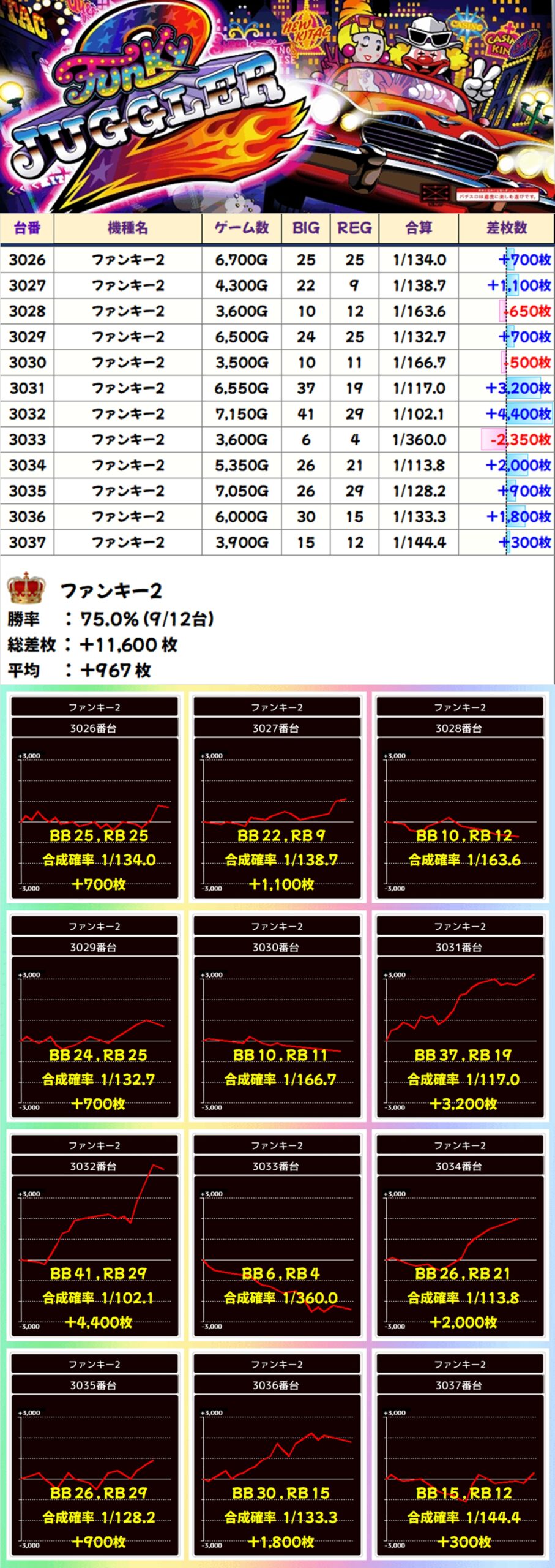【全台系濃厚】ファンキー2(9/12台+)→平均+967枚