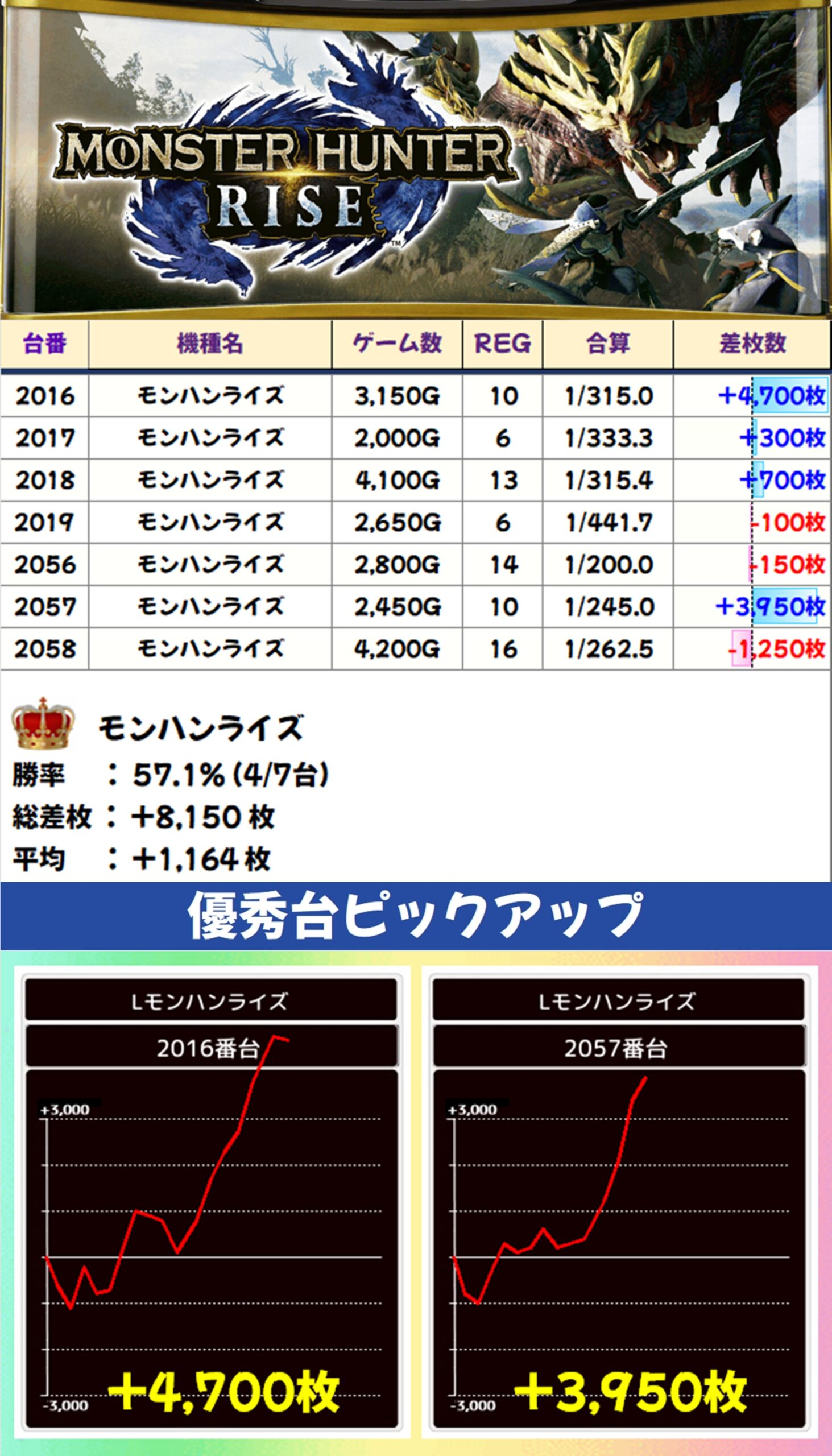 【高配分濃厚】モンハンライズ(4/7台+)→平均+1,164枚