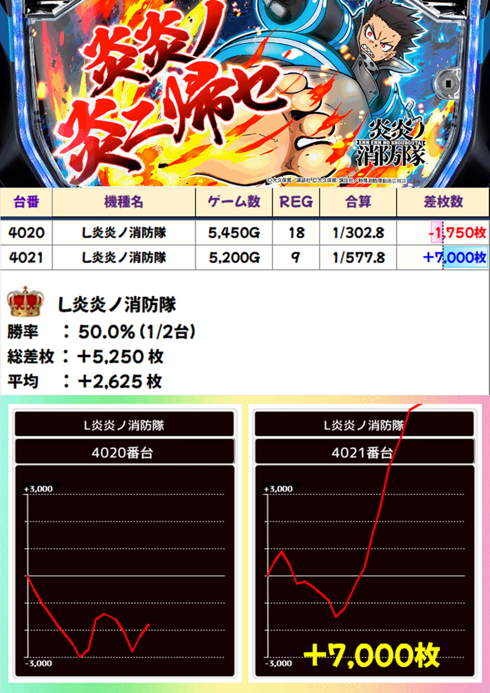 L炎炎ノ消防隊(1/2台+)→平均+2,625枚