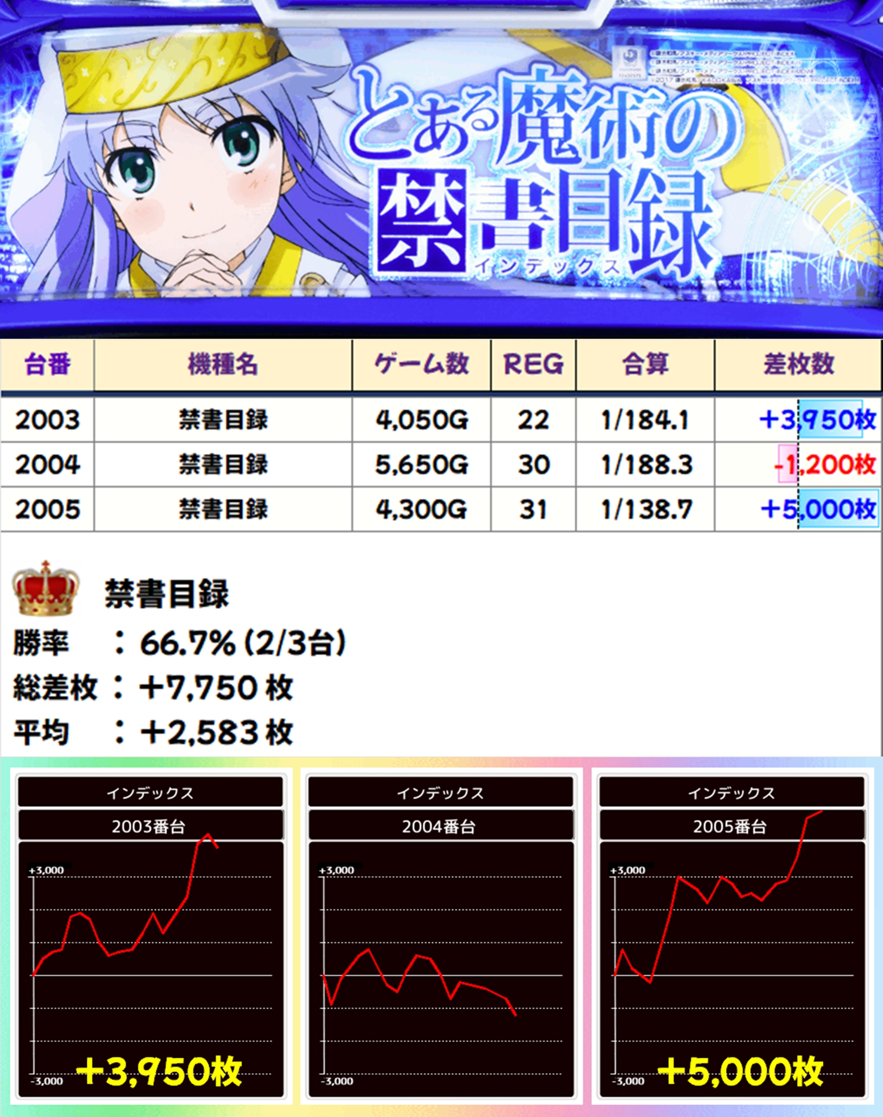 禁書目録も1台が不発でしたが、その他の2台は大幅プラスとなり、こちらも優秀な結果に!