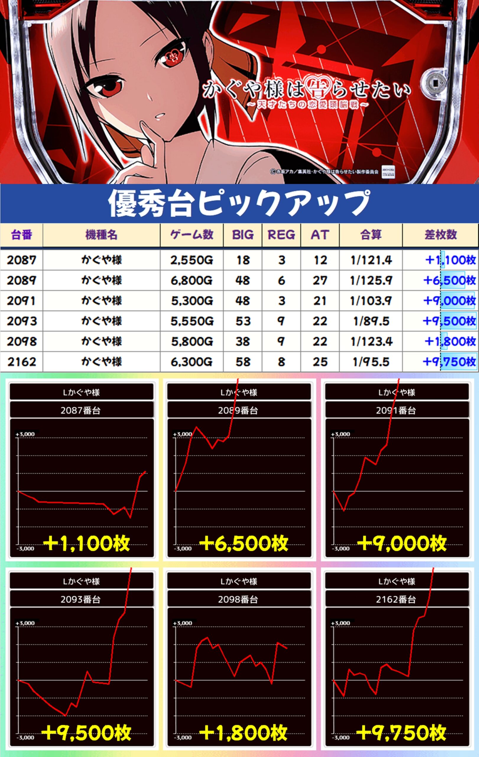 かぐや様は3台の+9000枚オーバーが飛び出しました!