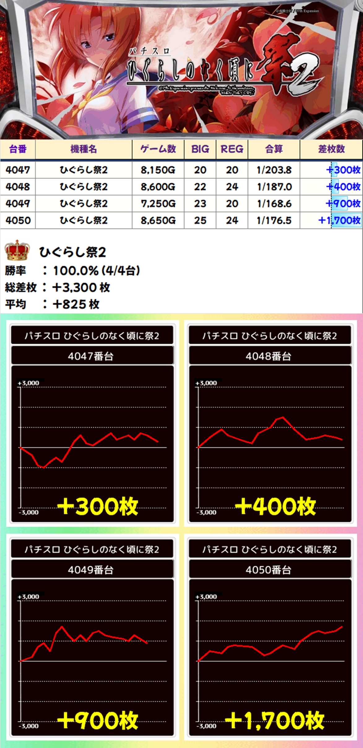 なお、ToLOVEる8.7はジャンプオマージュ機種でもあり、増台機種でもありました。ひぐらし祭2は不発気味の台もありましたが、全台がしっかり回されており、お宝台であったことは間違いないかと思われます!