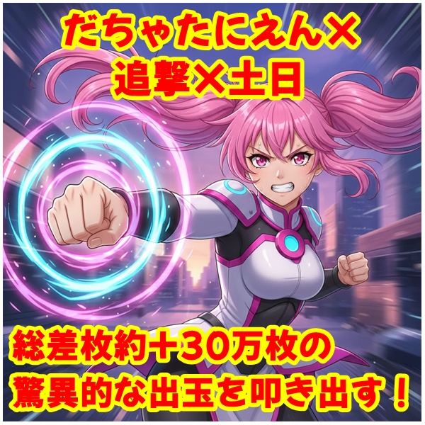 期待できる日に追撃が告知されることもあり、最強のゲリライベントであるだちゃたにえんも開催!だちゃたにえんは高頻度で総差枚20万枚超の結果を残しており、毎回お宝台が大量に確認できます!