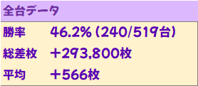 今回は総差枚+293800枚、平均+566枚という驚異的な結果に。