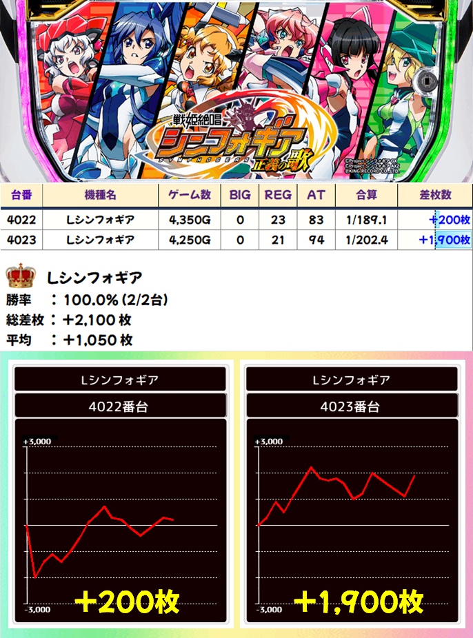 Lシンフォギア(2/2台+)⏩Ave+1,050枚