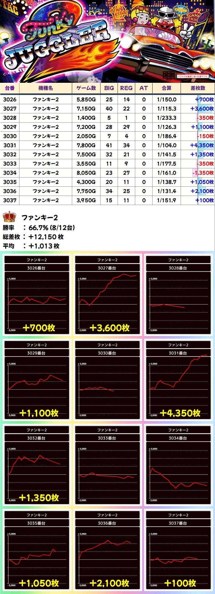 ファンキー2(8/12台+)⏩Ave+1,013枚