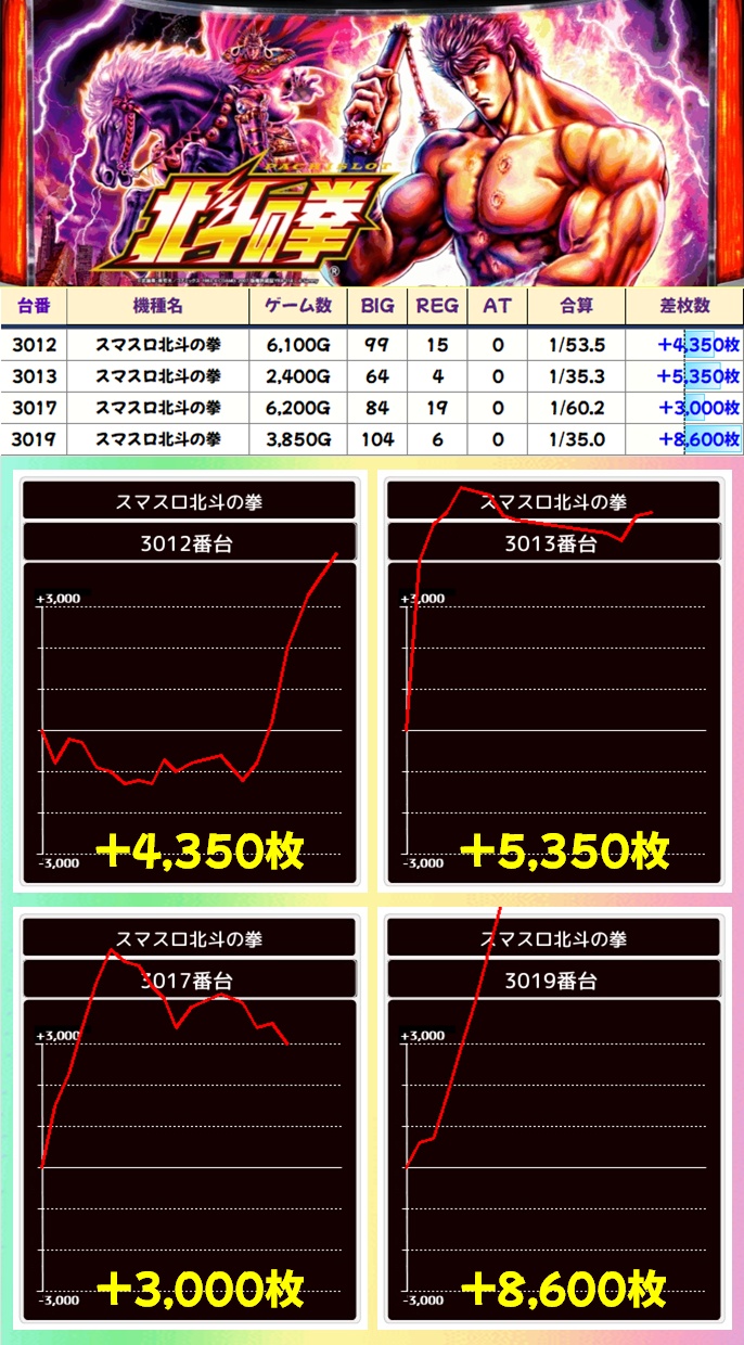 スマスロ北斗の拳(5/9台+)⏩Ave+2,150枚