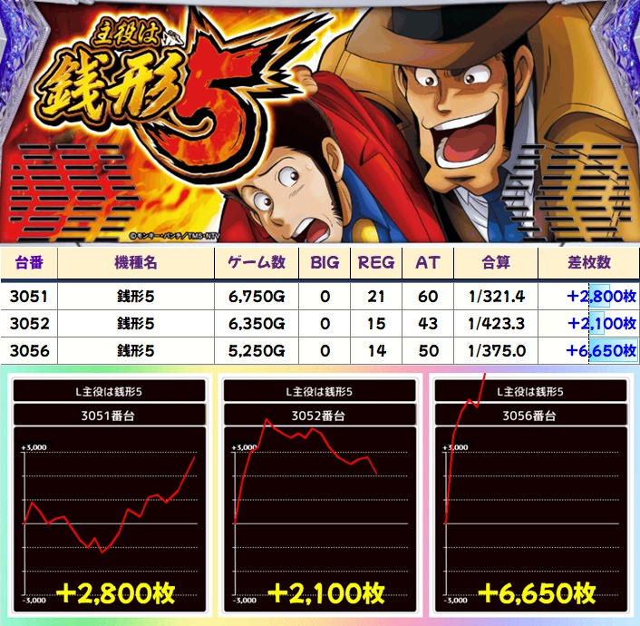 銭形5(3/6台+)⏩Ave+1,150枚