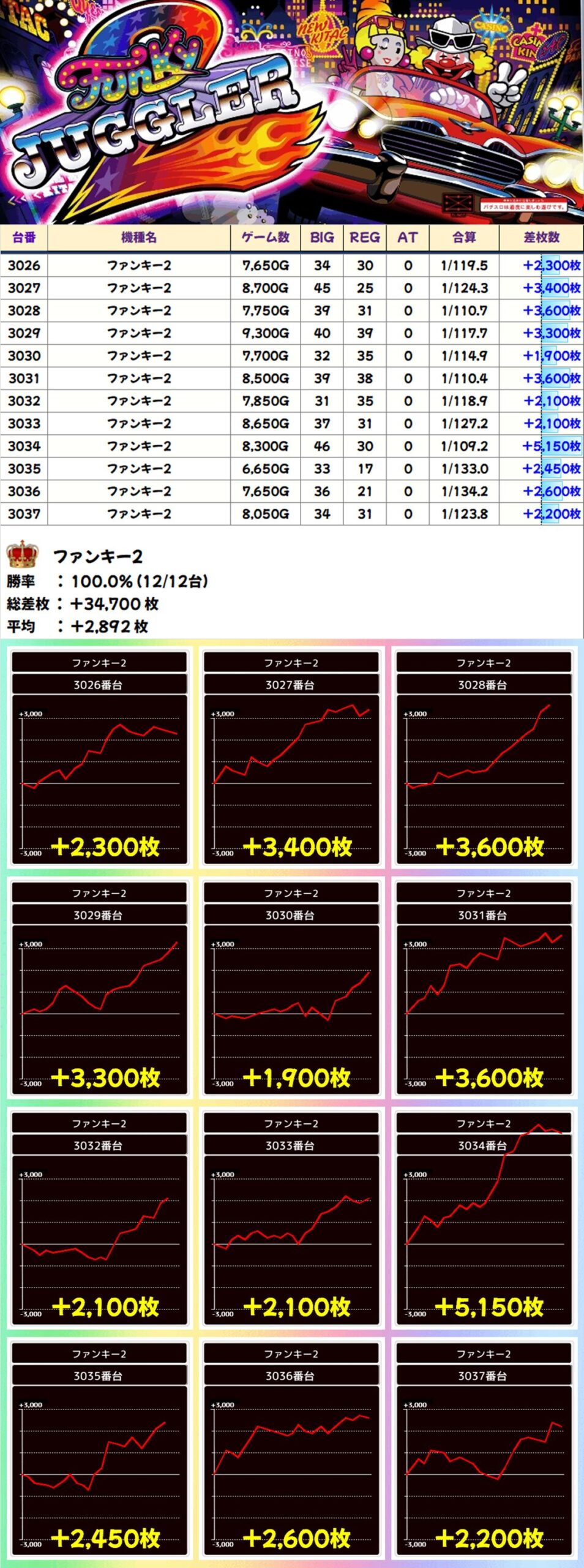 ファンキー2 (12/12台+) ➡平均 +2,892枚