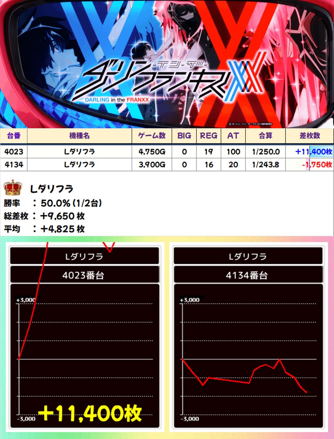 Lダリフラ (1/2台+) ➡平均 +4,825枚