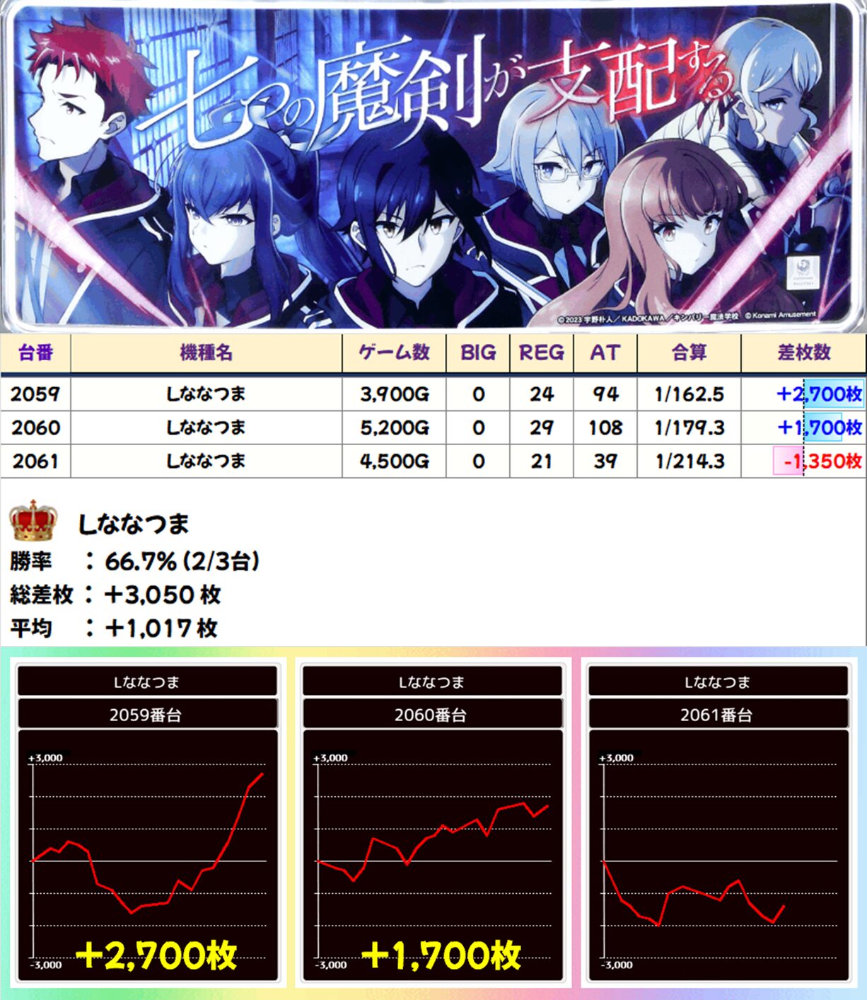 今回は平均200枚超と高水準の結果を残す!それでは結果を見ていきましょう!