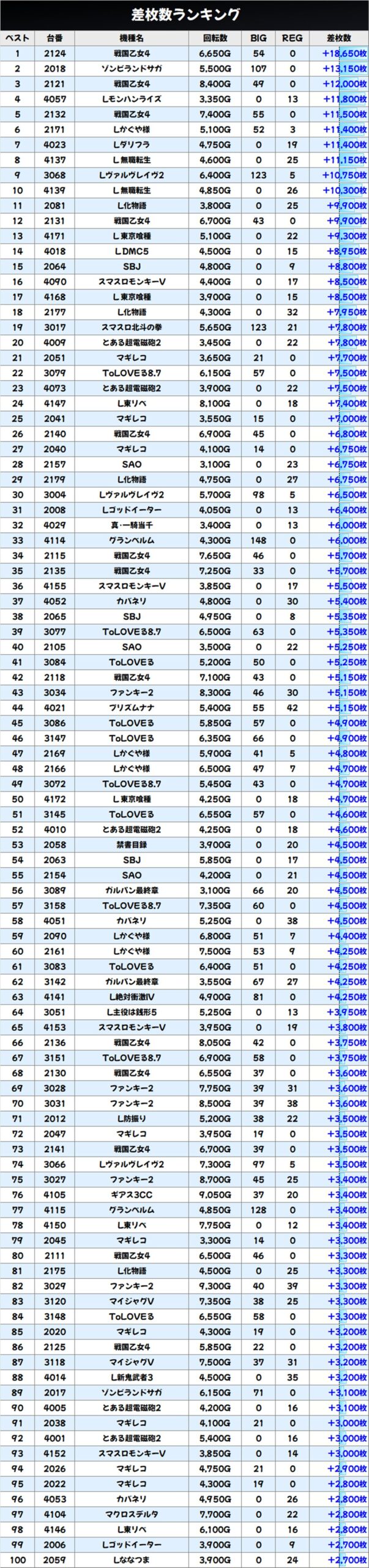 本日は高配分機種が大量!以下の機種が1/2系以上の仕掛けとなった模様です。