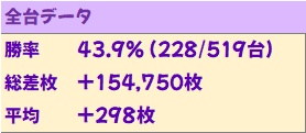 この日は総差枚+15.4万枚、平均+298枚の好成績を残す結果となりました!