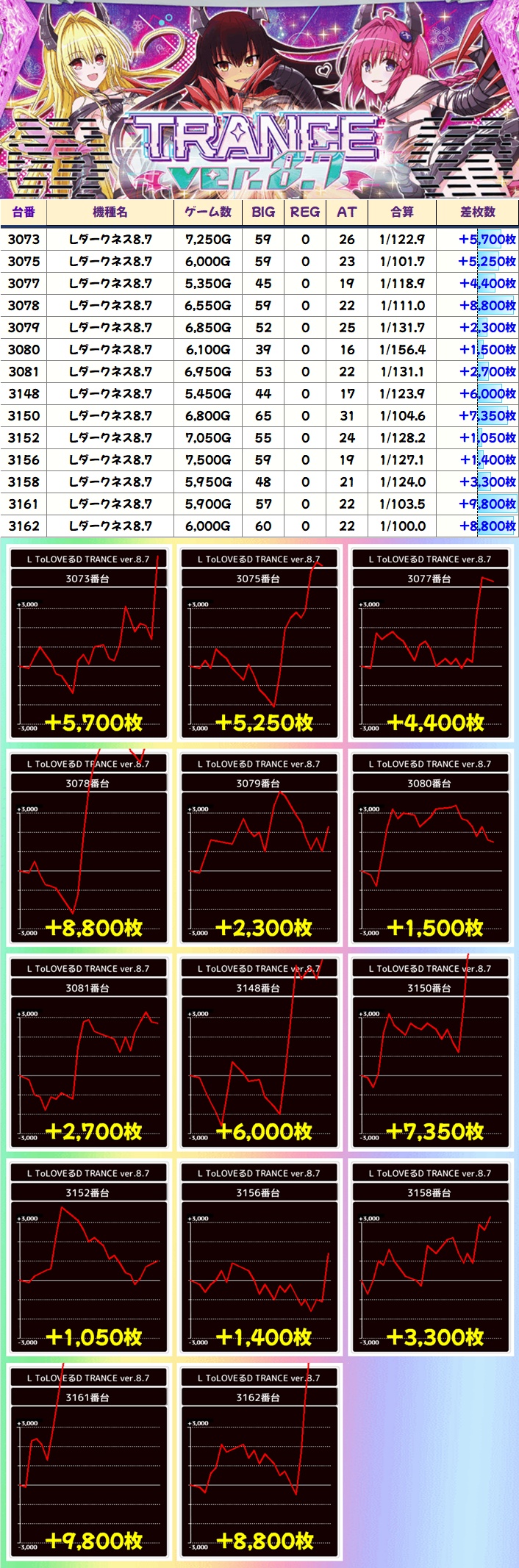 ToLOVEる8.7(18/27台+)➡平均+1,780枚