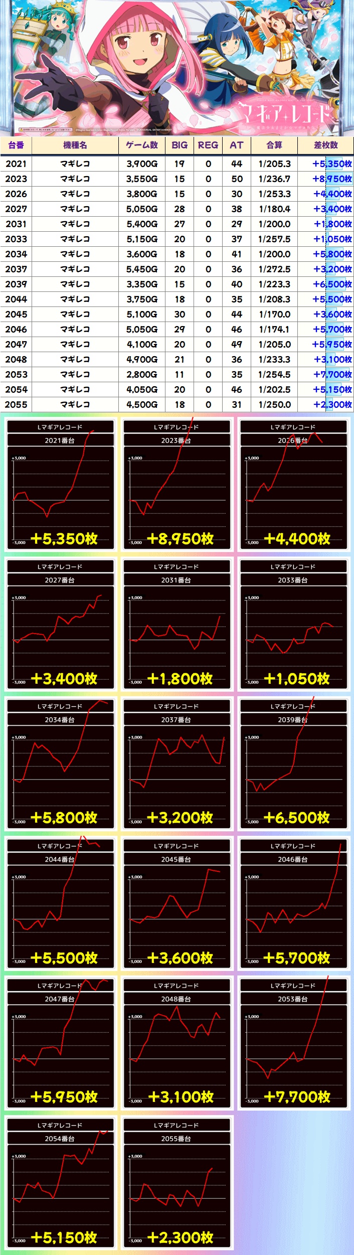 アトレコラボが行われていたこともあってかマギレコにもお宝台が大量!5000枚超が9台もありました!
