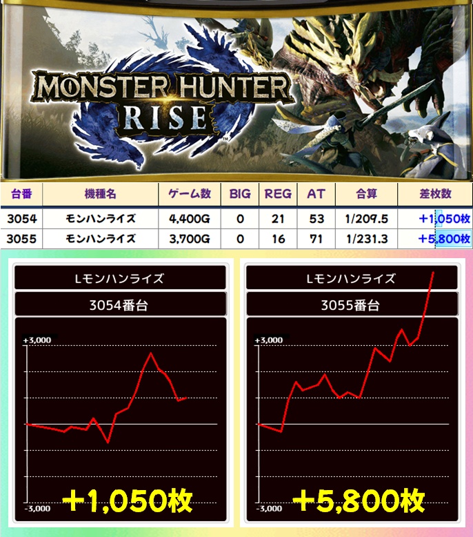 モンハンライズ(2/3台+)➡平均+1,400枚