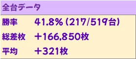 この日は総差枚+16.6万枚、平均+321枚の圧巻の結果を残す結果となりました!