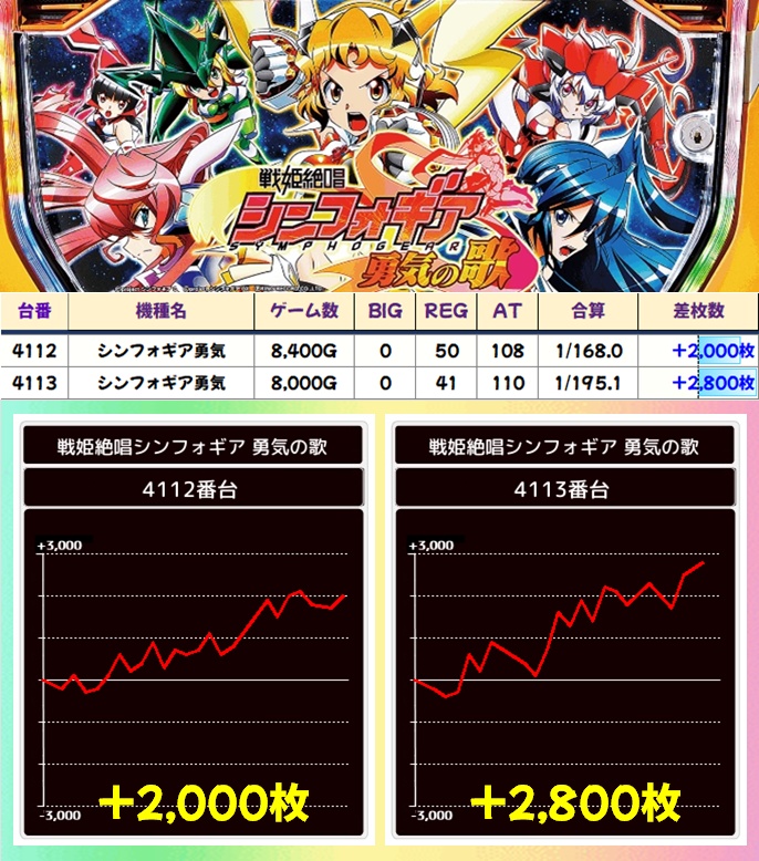 シンフォギア勇気(2/2台+)→平均+2400枚