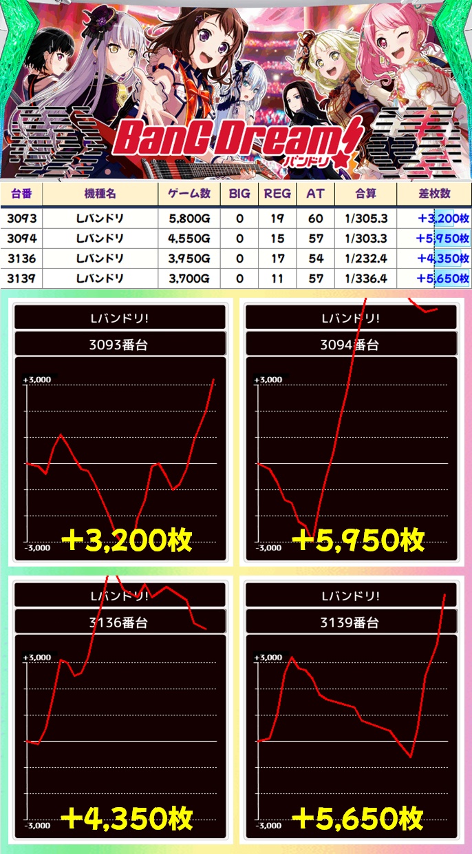 【1/2系濃厚】バンドリ(5/7台+)→平均+2,243枚
