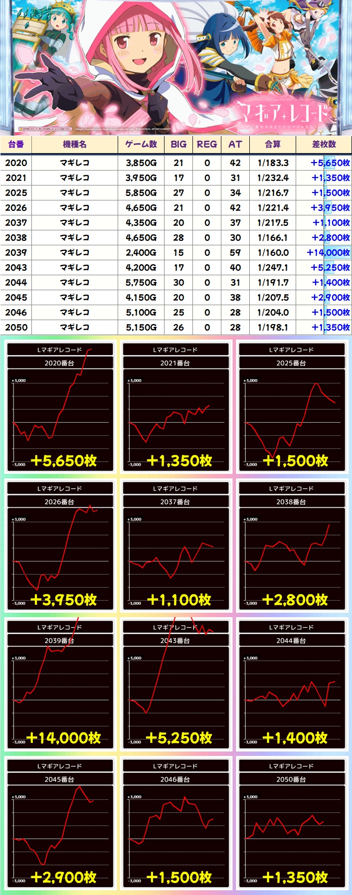 マギレコ(21/42台+)→平均+286枚