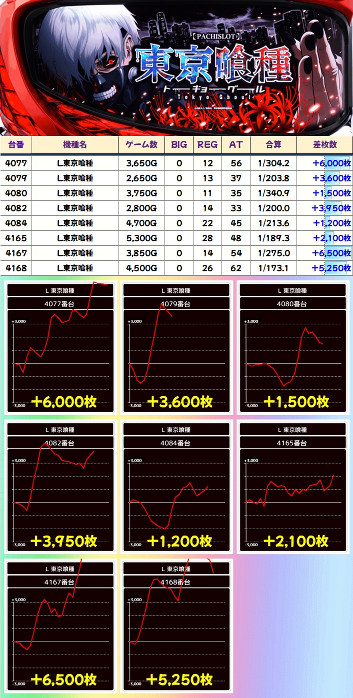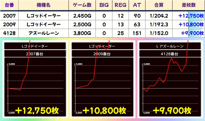 この日は上記で取り上げた機種以外にも万枚台が出現!単品も複数あったのは間違いないでしょう!