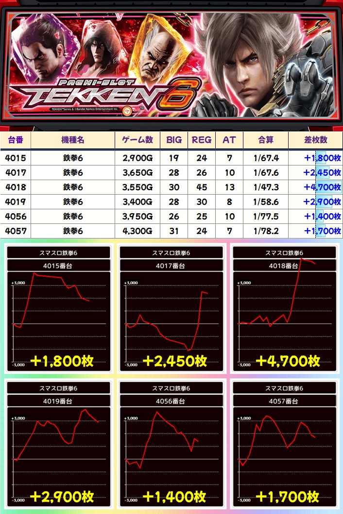 【1/2系濃厚】鉄拳6(8/12台+)→平均+496枚