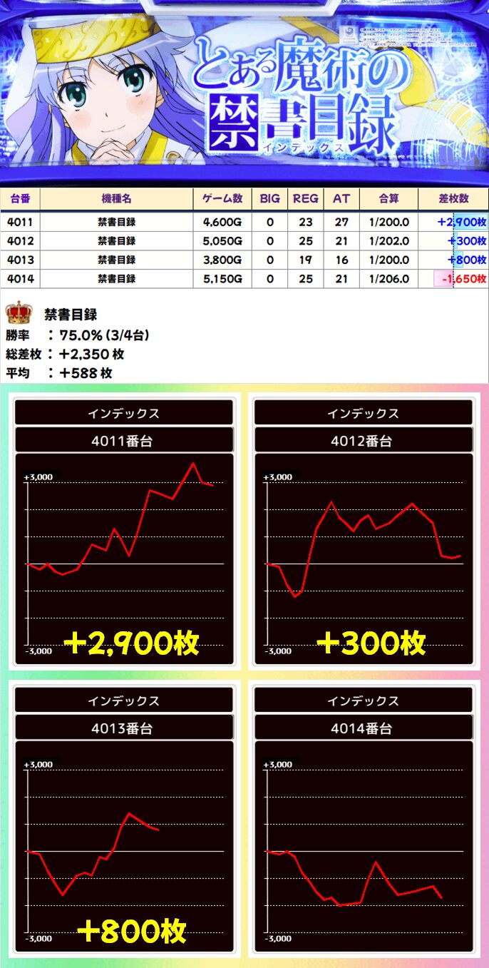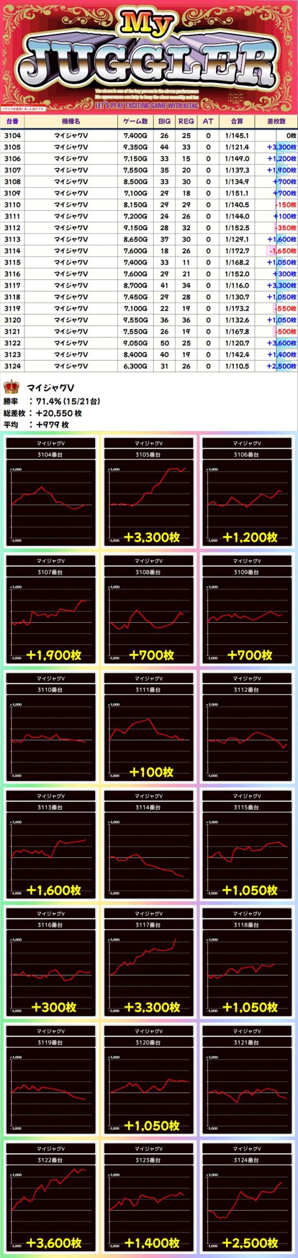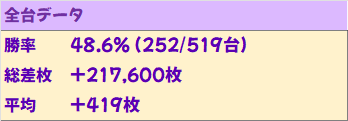 この日は総差枚+21.7万枚、平均+419枚と素晴らしい結果に!