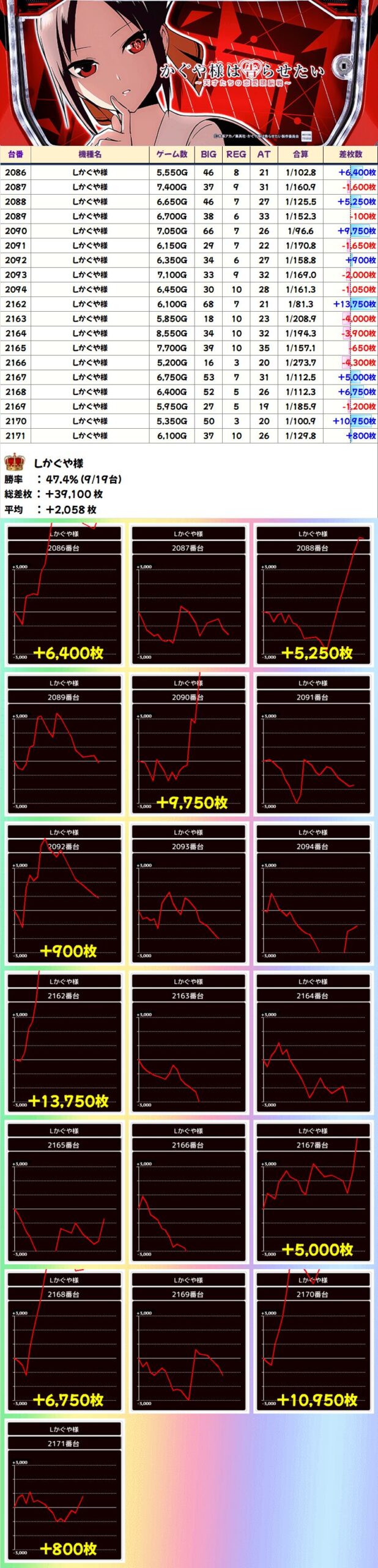 Lかぐや様(9/19台+)➡平均+2,058枚