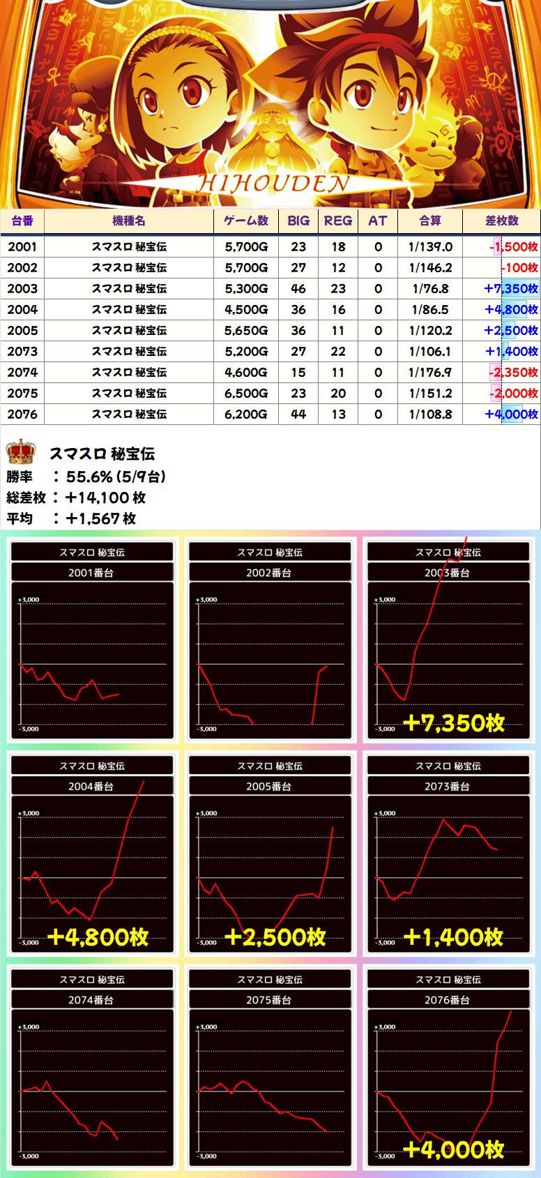 スマスロ 秘宝伝(5/9台+)➡平均+1,567枚