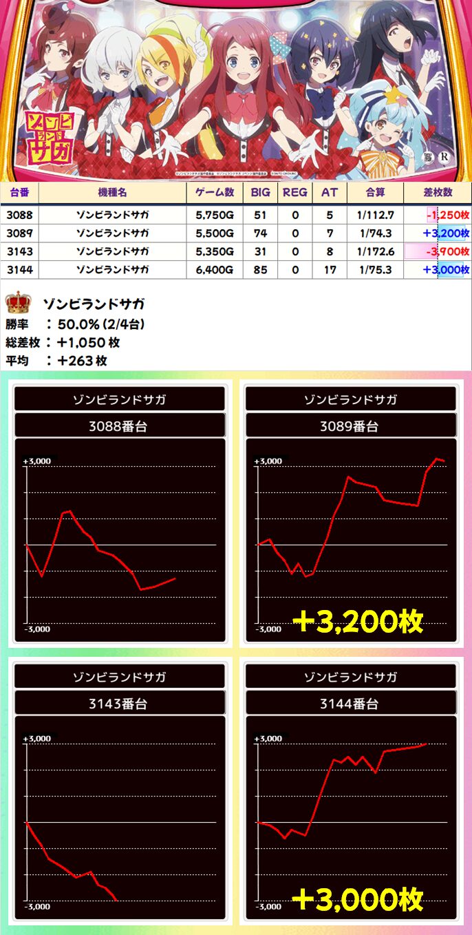 ゾンビランドサガ(2/4台+)➡平均+263枚