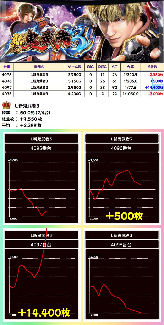L新鬼武者3 (2/4台+) ➡平均 +2,388枚