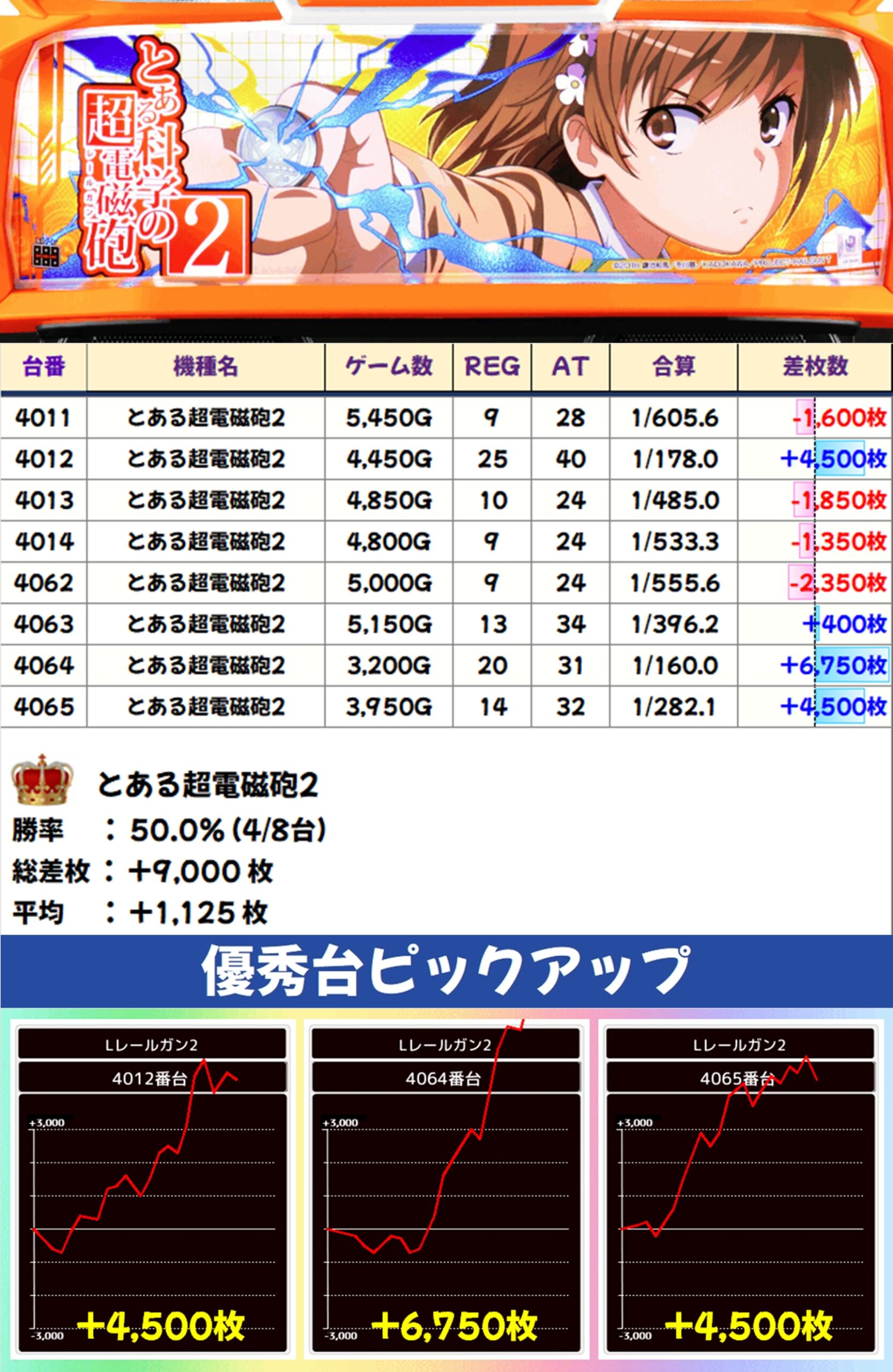 とある超電磁砲2(4/8台+)→平均+1,125枚