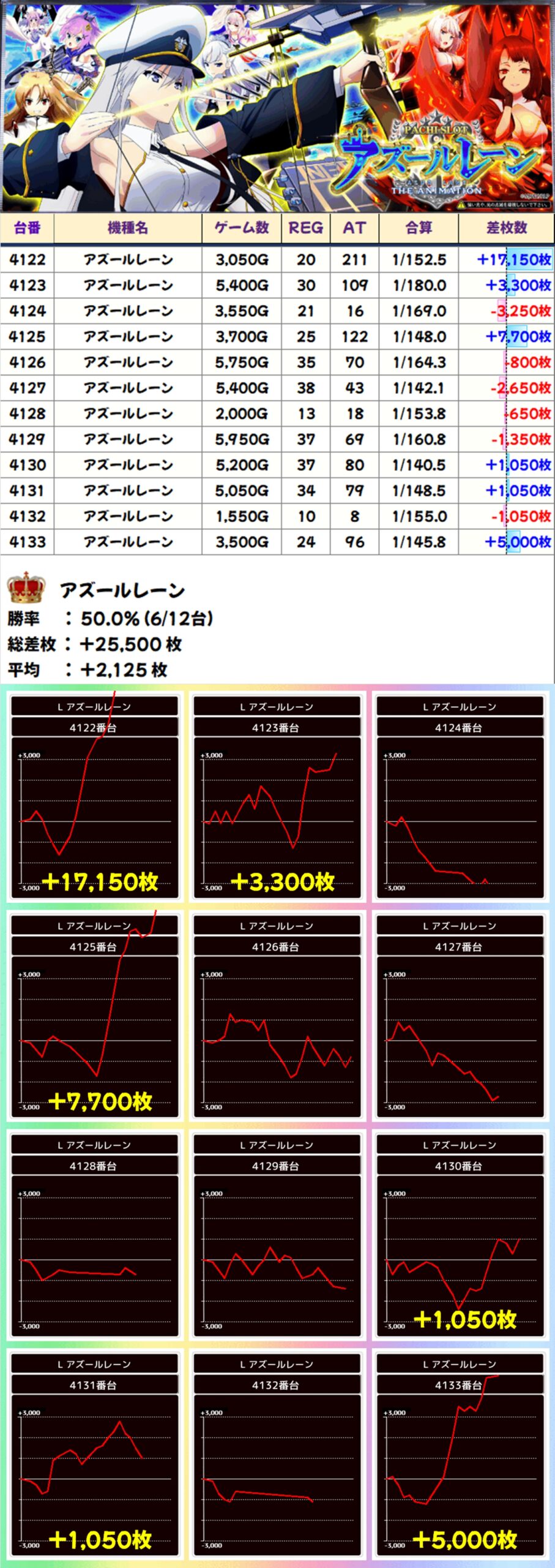 アズールレーン(6/12台+)→平均+2,125枚
