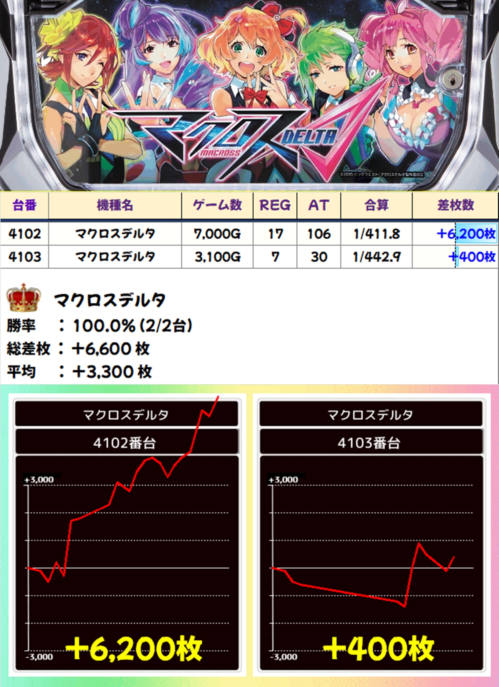マクロスデルタ(2/2台+)→平均+3,300枚