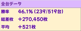 総差枚は+27万枚オーバー、平均+521枚と過去の黒閃と比較しても優秀な結果を残しました!