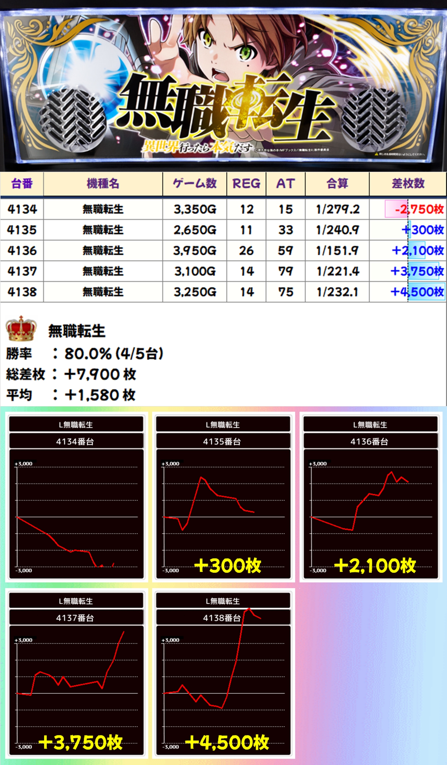 無職転生(4/5台+)→平均+1,580枚