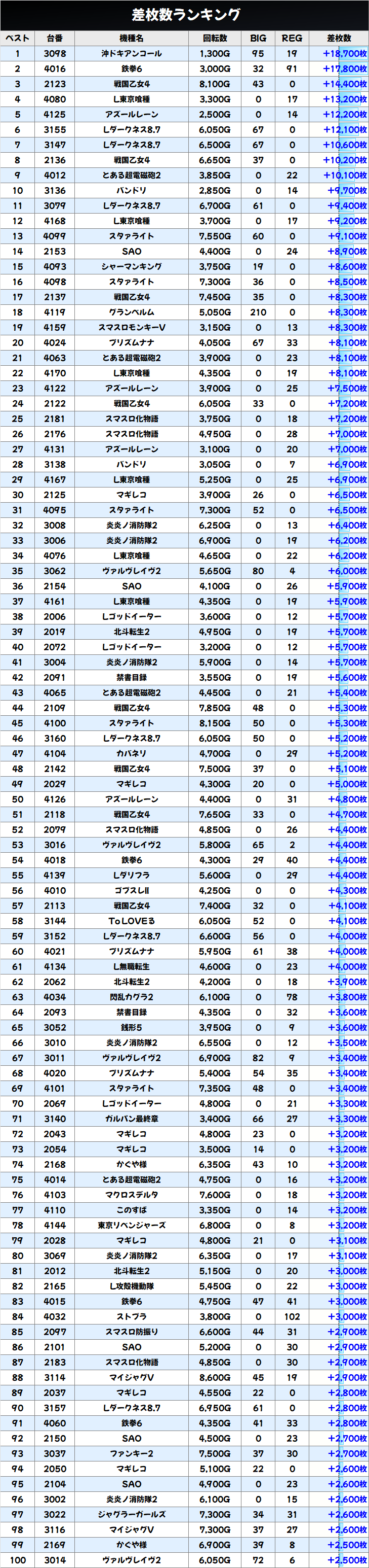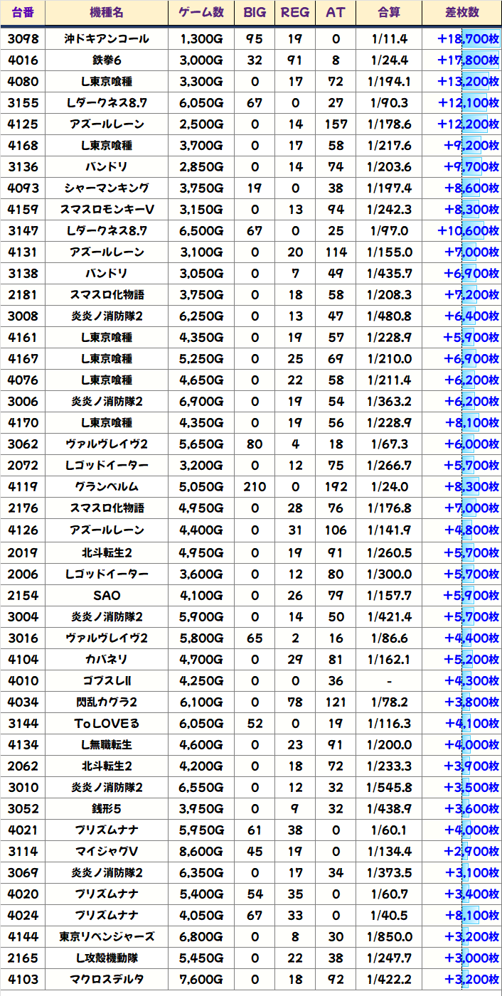 📈10/18:総差枚+31.2万枚 平均+602枚